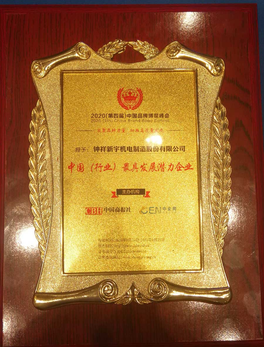 鐘祥新宇機電制造股份有限公司由于銳意創(chuàng)新,品牌影響力取得重大成就在此次中國品牌博鰲峰會上被授予《中國(行業(yè))標志品牌》、《中國(行業(yè))最具發(fā)展?jié)摿ζ髽I(yè)》榮譽稱號。