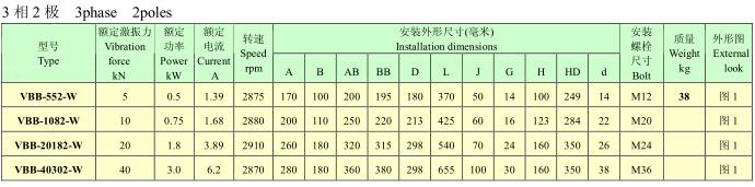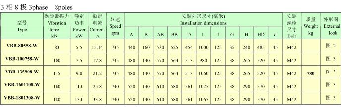 VBB系列隔爆型振動電機(jī),功率0.2~13KW,2、4、6、8極,激振力為3~180KN,共計(jì)25個規(guī)格。